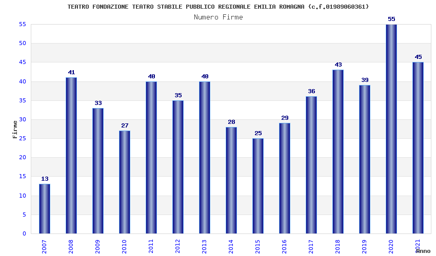 | 2020 | 55 | 2.534,49 | 46,08 | 20.620 | 1.792 | 264 | 100 |