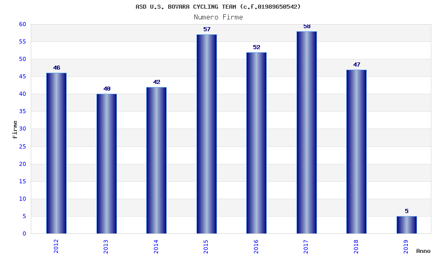 | Anno | Firme | Importi | Media | Naz. | Reg. | Prov. | Comu. |