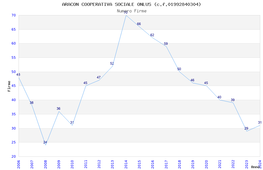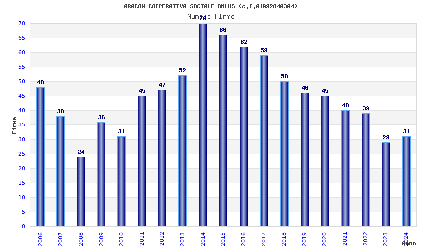 | 2014 | 70 | 1.496,76 | 21,38 | 25.647 | 688 | 311 | 102 |