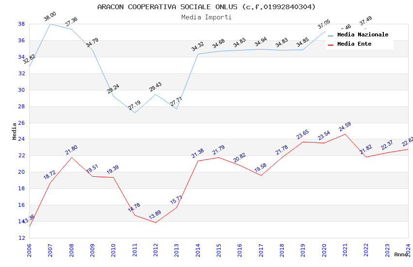 | Anno | Firme | Importi | Media | Naz. | Reg. | Prov. | Comu. |