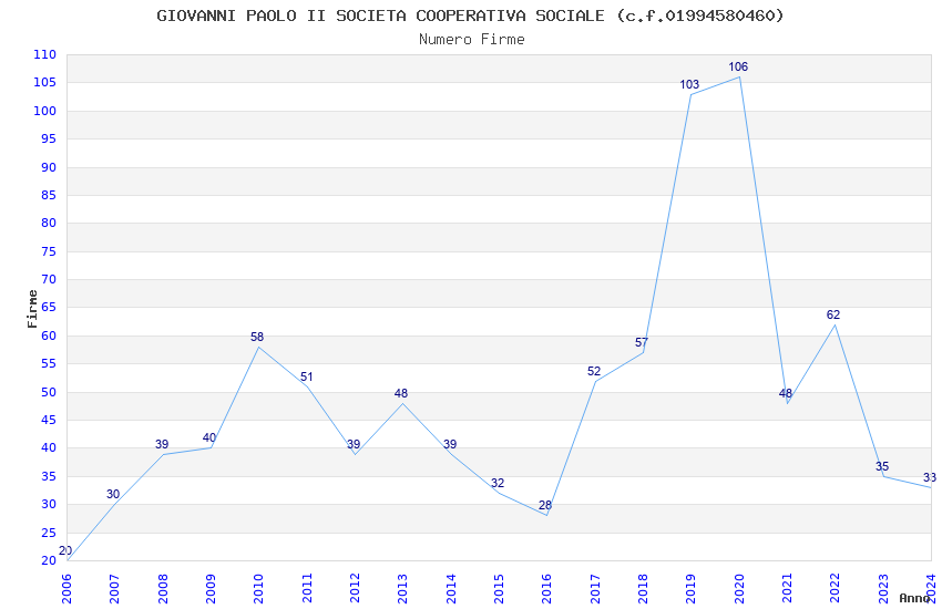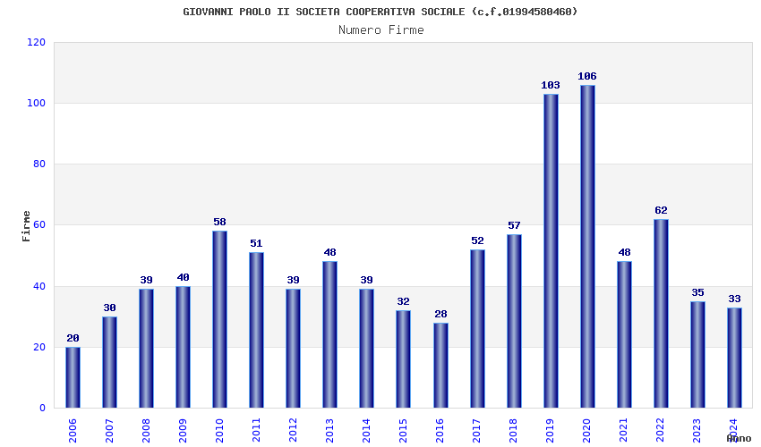 | 2020 | 106 | 5.529,80 | 52,17 | 10.267 | 662 | 68 | 16 |