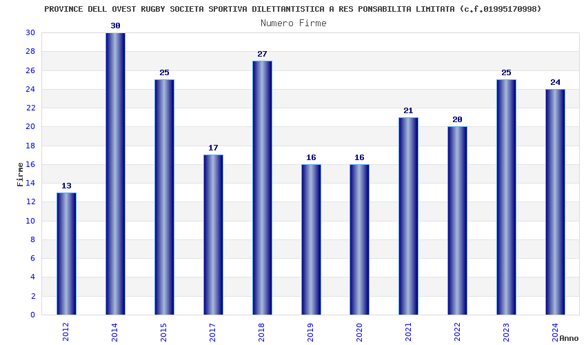 | Anno | Firme | Importi | Media | Naz. | Reg. | Prov. | Comu. |