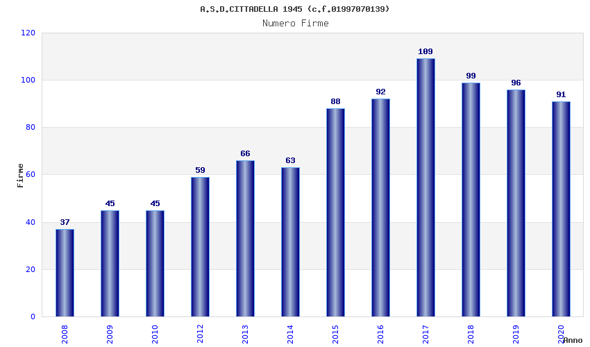 | Anno | Firme | Importi | Media | Naz. | Reg. | Prov. | Comu. |