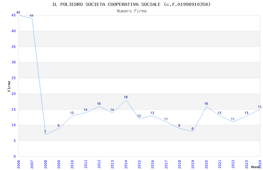 | 2006 | 45 | 1.137,59 | 25,28 | 18.926 | 1.680 | 214 | 8 |