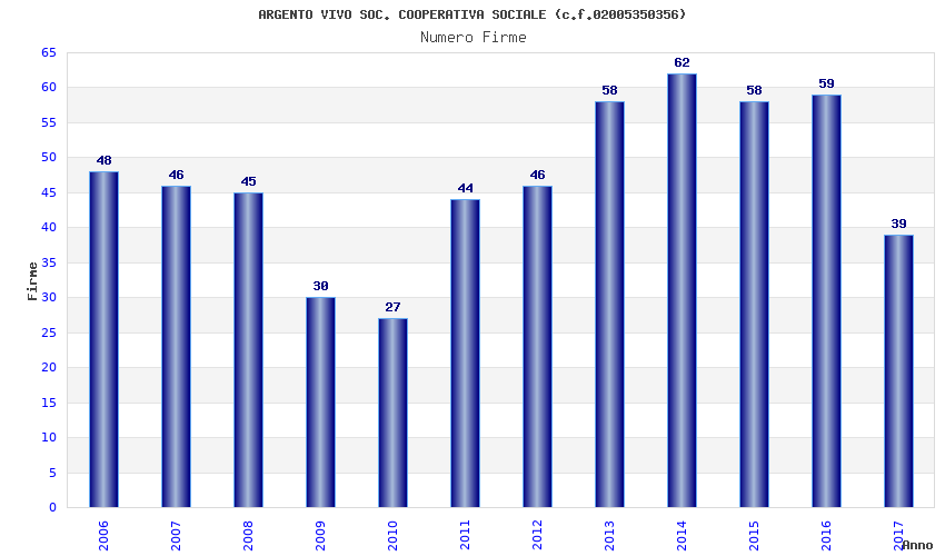 | Anno | Firme | Importi | Media | Naz. | Reg. | Prov. | Comu. |