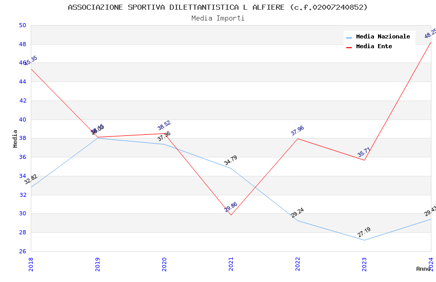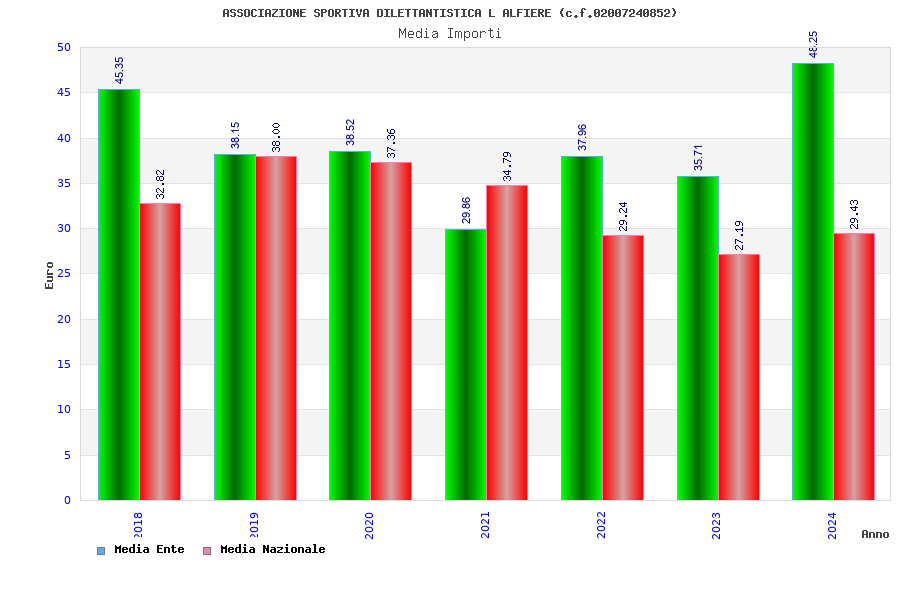 | Anno | Firme | Importi | Media | Naz. | Reg. | Prov. | Comu. |
