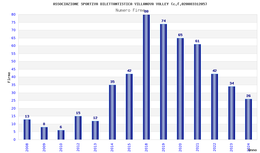 | 2018 | 80 | 2.084,10 | 26,05 | 23.011 | 2.011 | 513 | 9 |