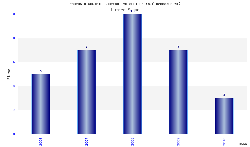 | Anno | Firme | Importi | Media | Naz. | Reg. | Prov. | Comu. |