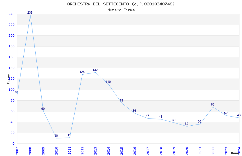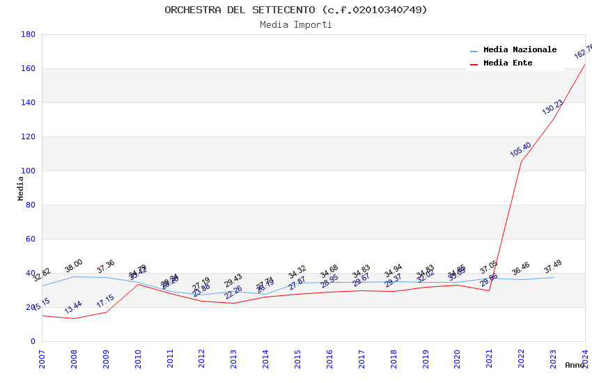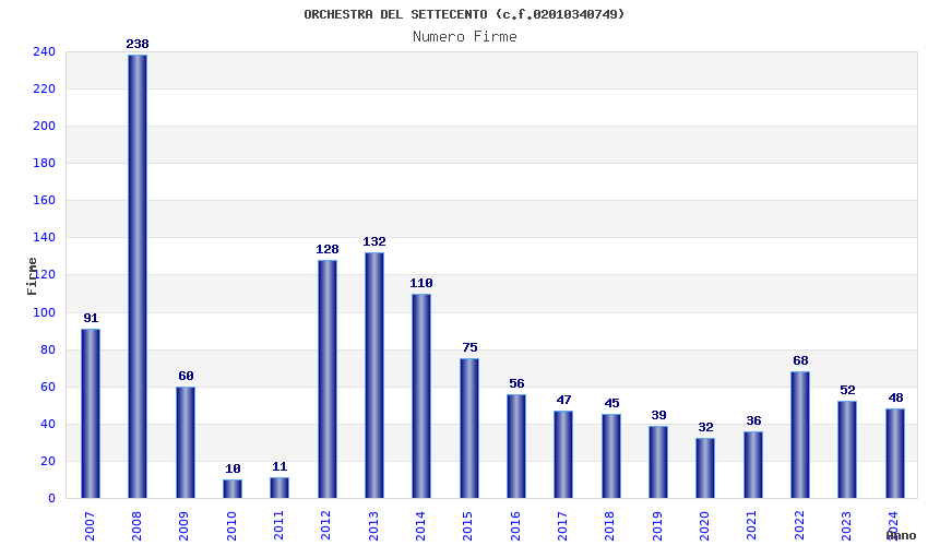 | Anno | Firme | Importi | Media | Naz. | Reg. | Prov. | Comu. |
