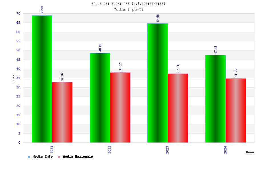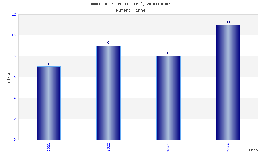 | Anno | Firme | Importi | Media | Naz. | Reg. | Prov. | Comu. |