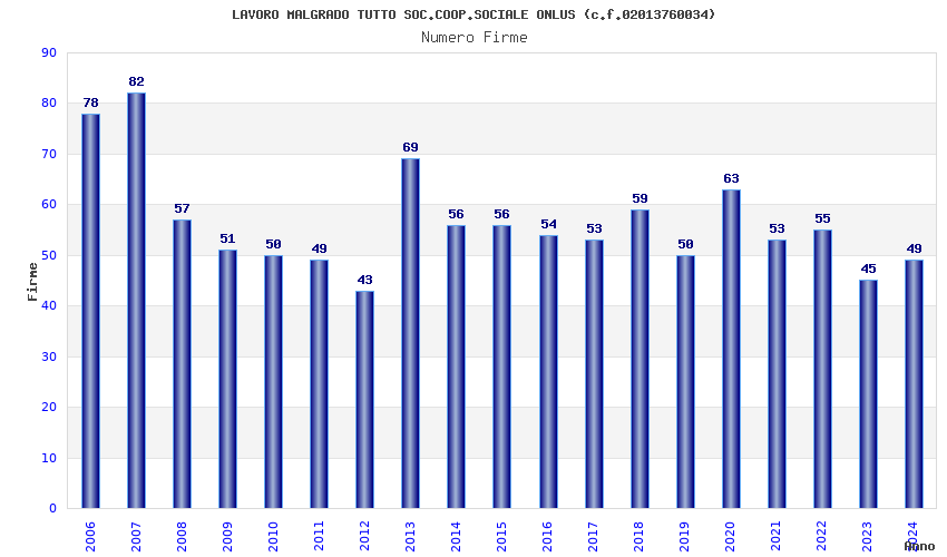 | Anno | Firme | Importi | Media | Naz. | Reg. | Prov. | Comu. |