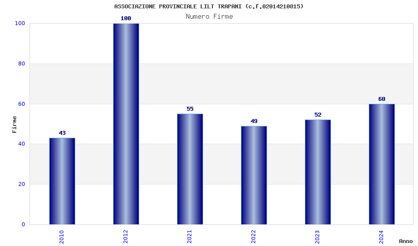 | Anno | Firme | Importi | Media | Naz. | Reg. | Prov. | Comu. |