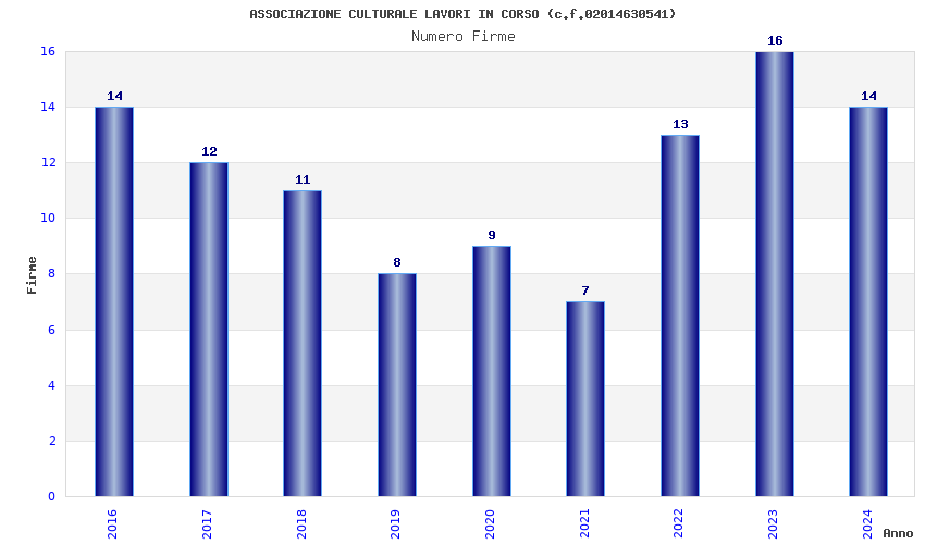 | 2016 | 14 | 426,36 | 30,45 | 42.963 | 650 | 514 | 162 |