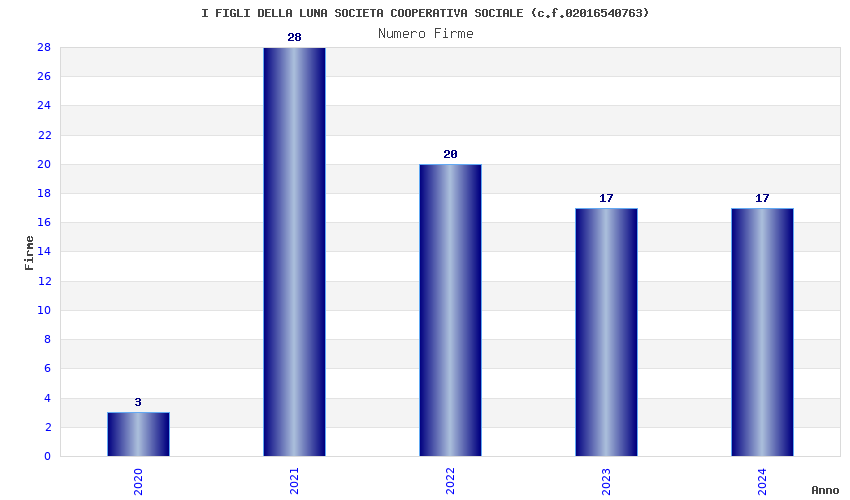 | Anno | Firme | Importi | Media | Naz. | Reg. | Prov. | Comu. |