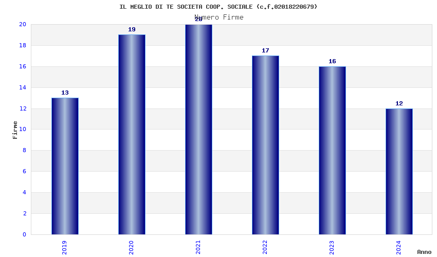 | Anno | Firme | Importi | Media | Naz. | Reg. | Prov. | Comu. |
