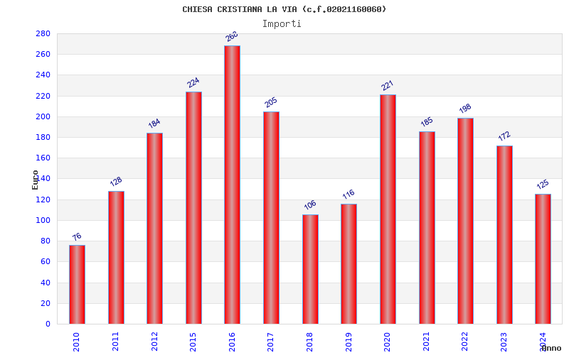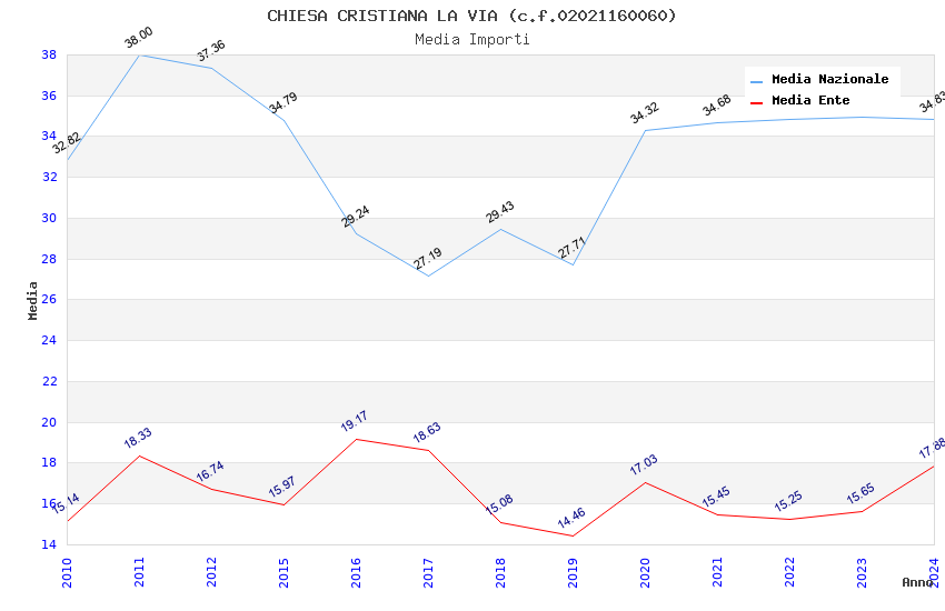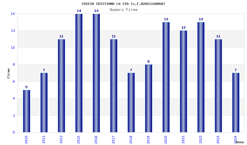 | Anno | Firme | Importi | Media | Naz. | Reg. | Prov. | Comu. |