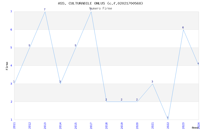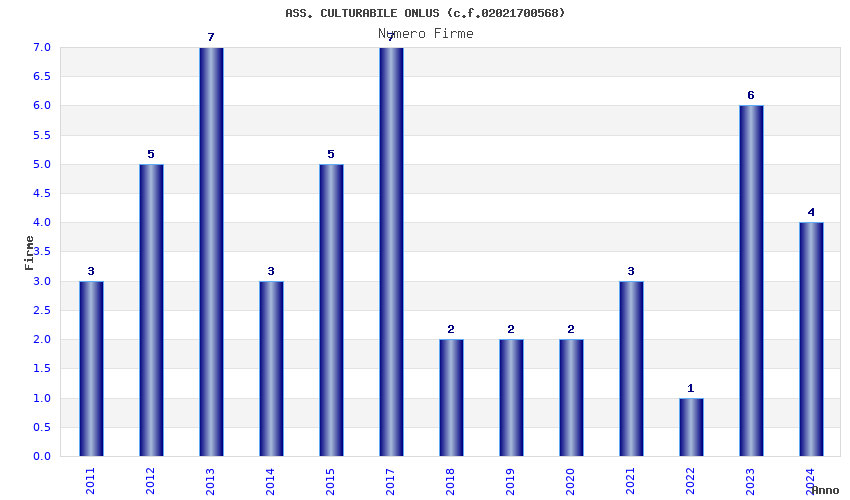 | Anno | Firme | Importi | Media | Naz. | Reg. | Prov. | Comu. |