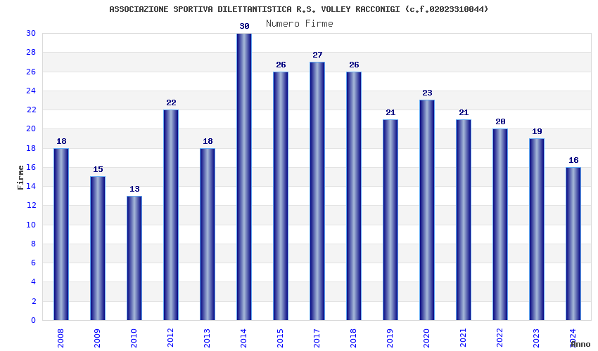 | 2018 | 26 | 655,57 | 25,21 | 41.402 | 3.588 | 599 | 10 |