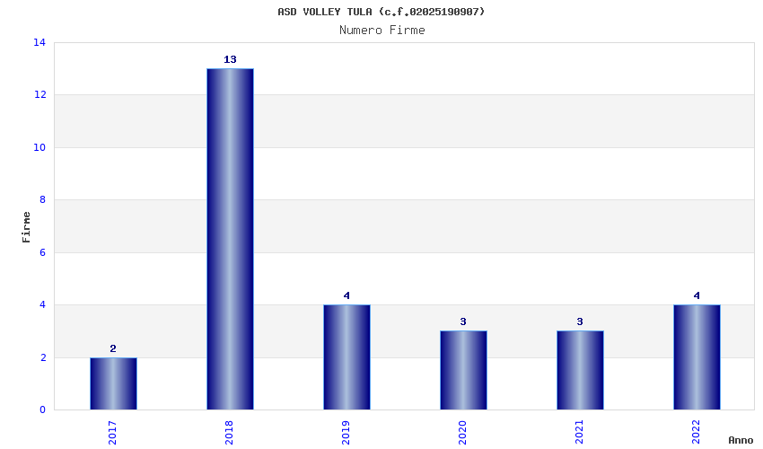 | Anno | Firme | Importi | Media | Naz. | Reg. | Prov. | Comu. |