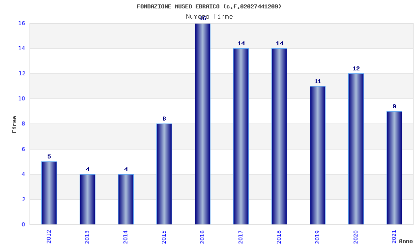 | Anno | Firme | Importi | Media | Naz. | Reg. | Prov. | Comu. |