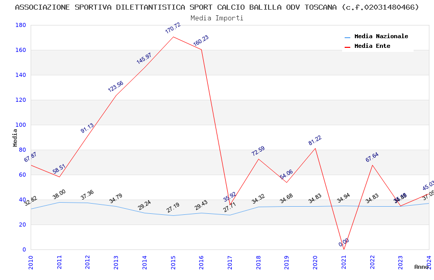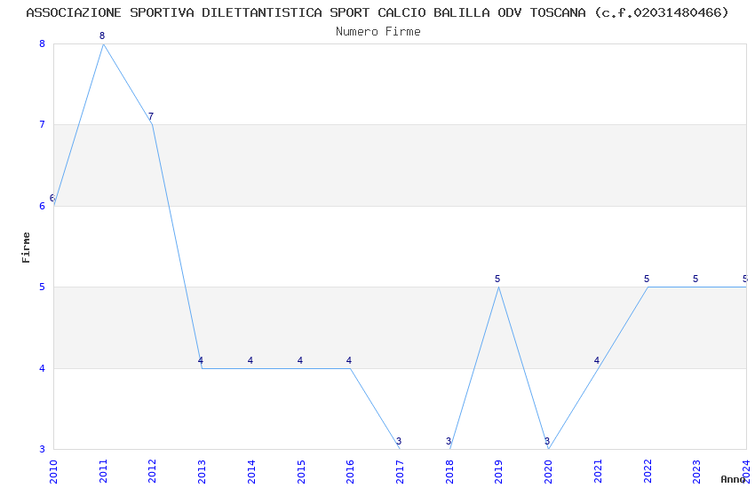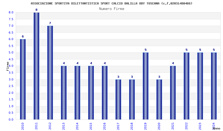 | Anno | Firme | Importi | Media | Naz. | Reg. | Prov. | Comu. |