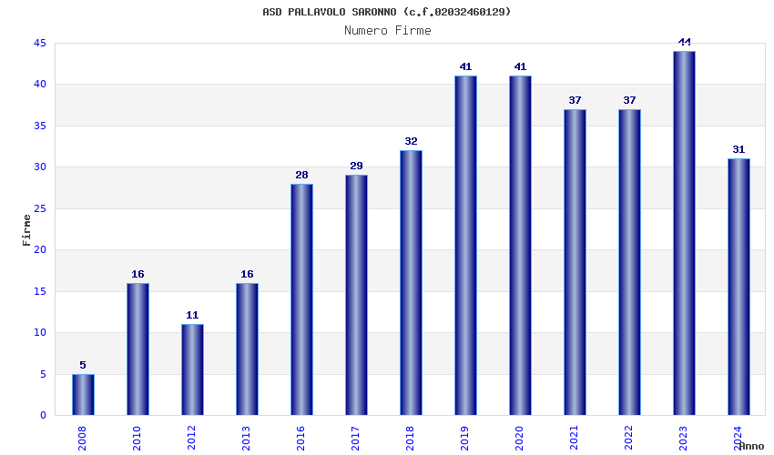| 2023 | 44 | 2.496,14 | 56,73 | 20.007 | 4.311 | 329 | 21 |