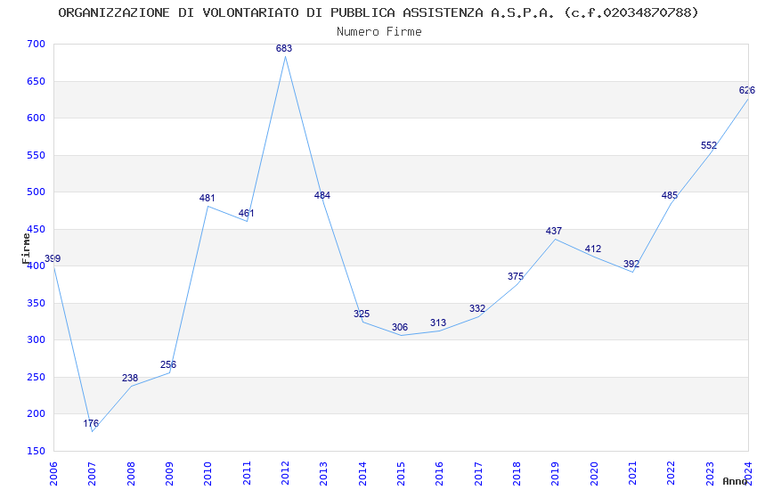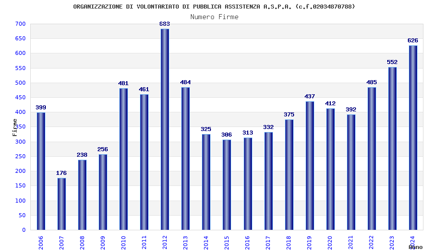 | Anno | Firme | Importi | Media | Naz. | Reg. | Prov. | Comu. |