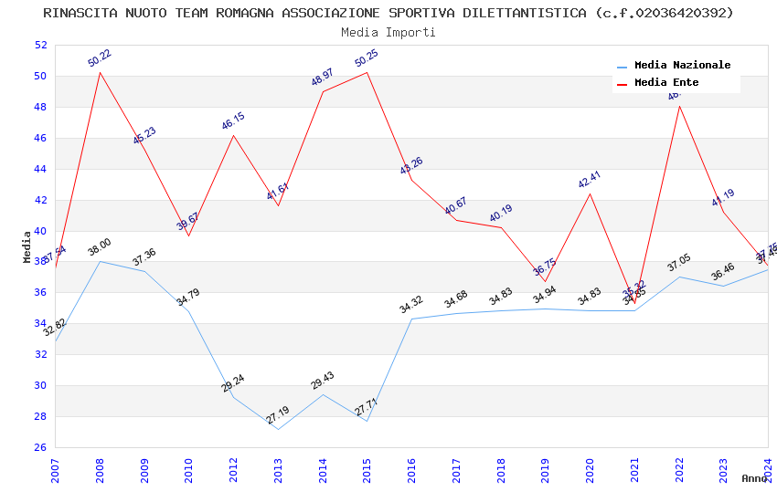 | Anno | Firme | Importi | Media | Naz. | Reg. | Prov. | Comu. |