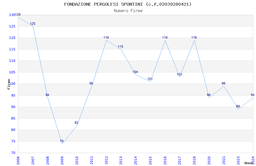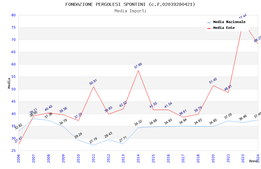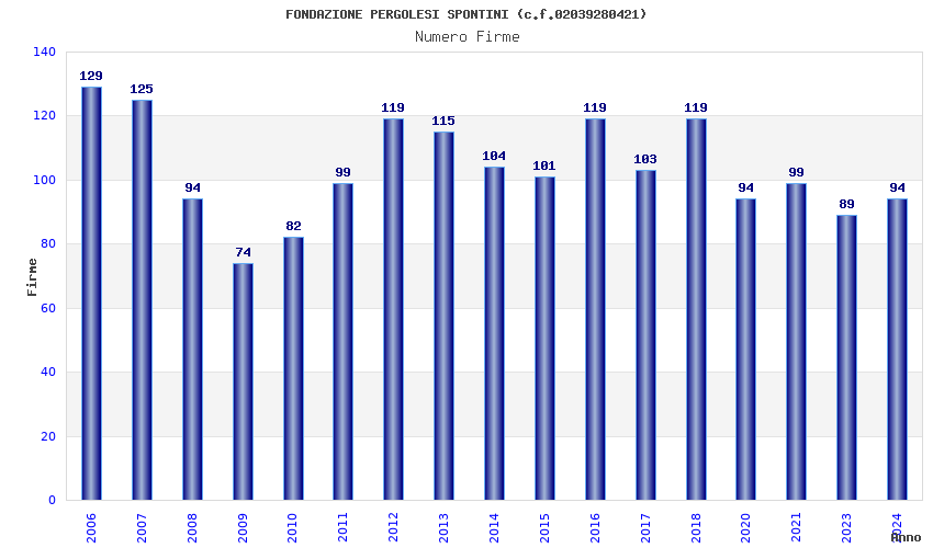| Anno | Firme | Importi | Media | Naz. | Reg. | Prov. | Comu. |