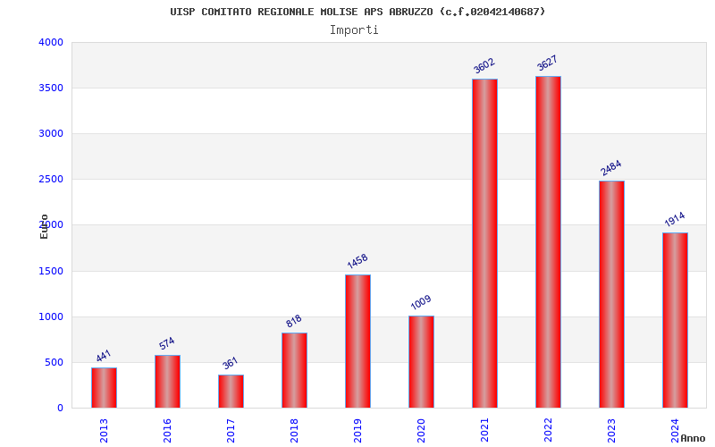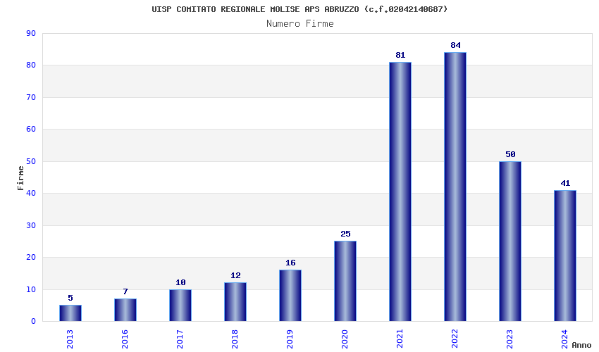 | Anno | Firme | Importi | Media | Naz. | Reg. | Prov. | Comu. |