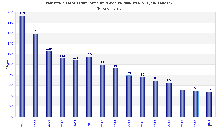 | Anno | Firme | Importi | Media | Naz. | Reg. | Prov. | Comu. |