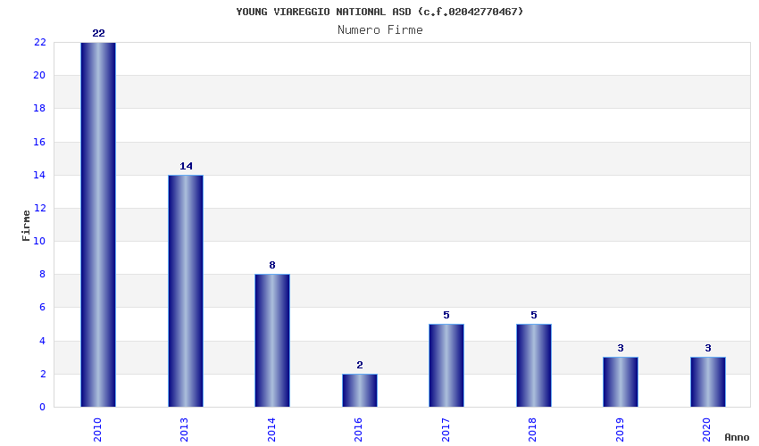 | Anno | Firme | Importi | Media | Naz. | Reg. | Prov. | Comu. |