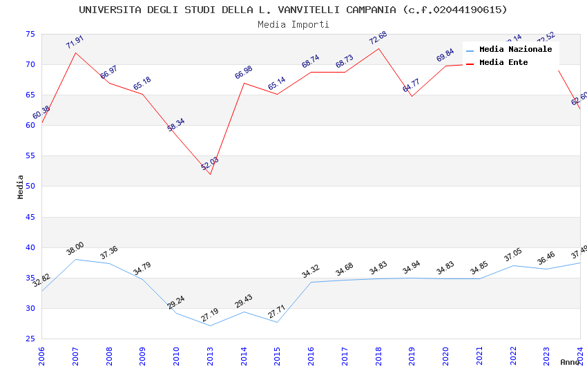 | Anno | Firme | Importi | Media | Naz. | Reg. | Prov. | Comu. |