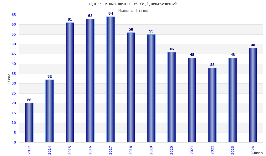 | 2017 | 64 | 3.684,99 | 57,58 | 14.687 | 3.400 | 335 | 5 |