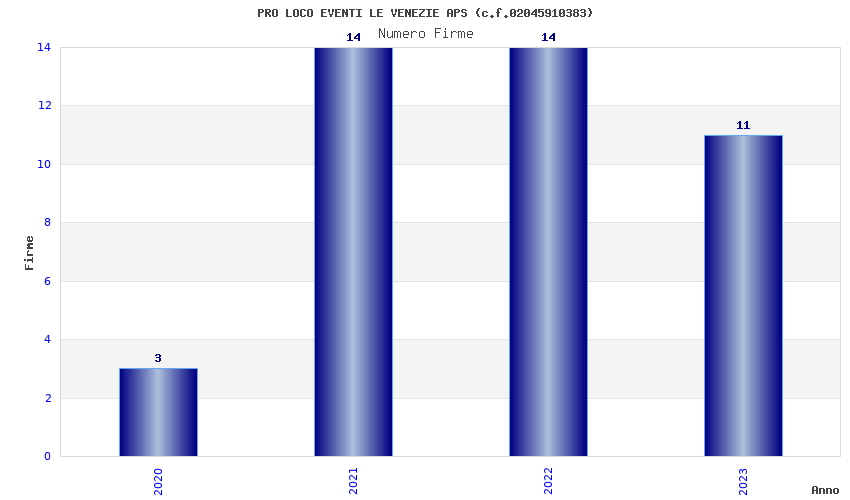 | Anno | Firme | Importi | Media | Naz. | Reg. | Prov. | Comu. |