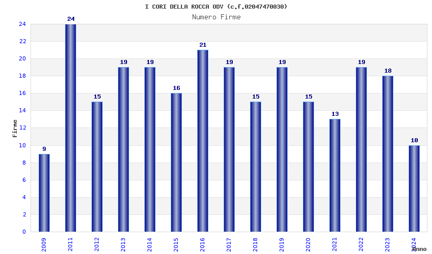 | Anno | Firme | Importi | Media | Naz. | Reg. | Prov. | Comu. |