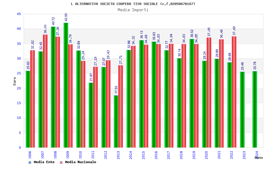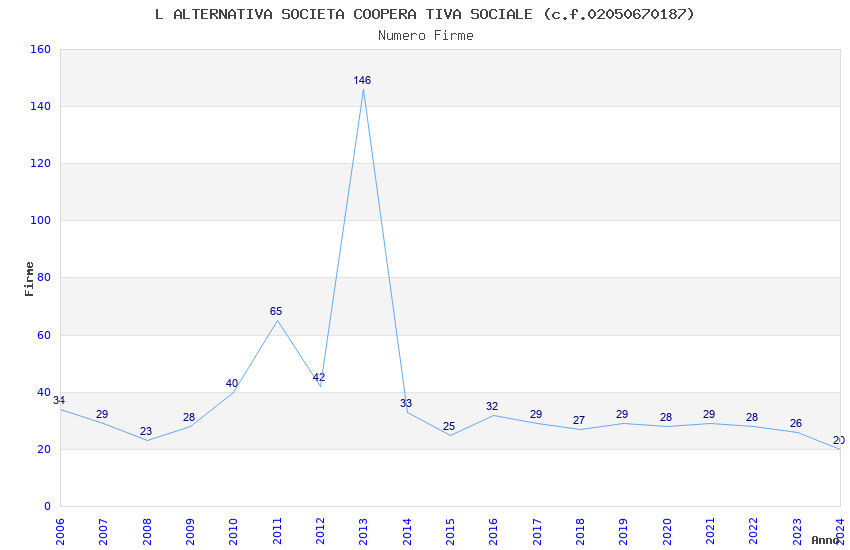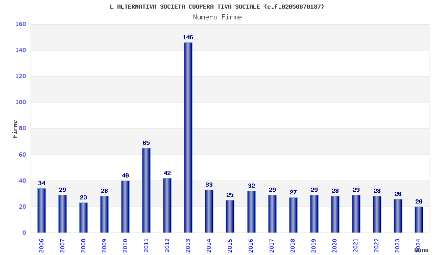 | Anno | Firme | Importi | Media | Naz. | Reg. | Prov. | Comu. |