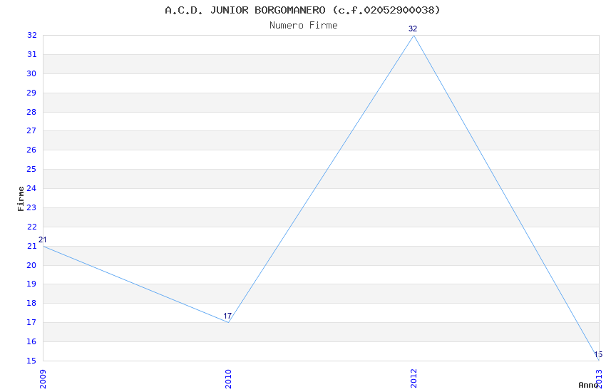 | 2013 | 15 | 686,96 | 45,80 | 31.499 | 2.775 | 245 | 19 |