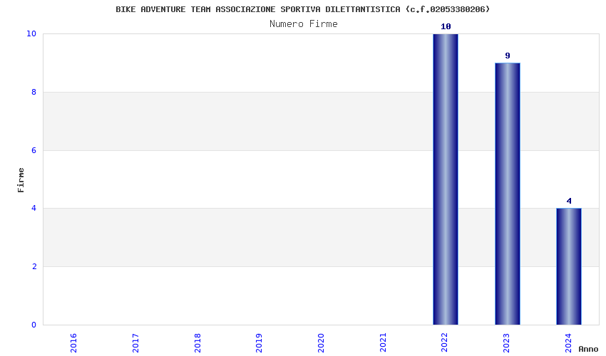 | Anno | Firme | Importi | Media | Naz. | Reg. | Prov. | Comu. |