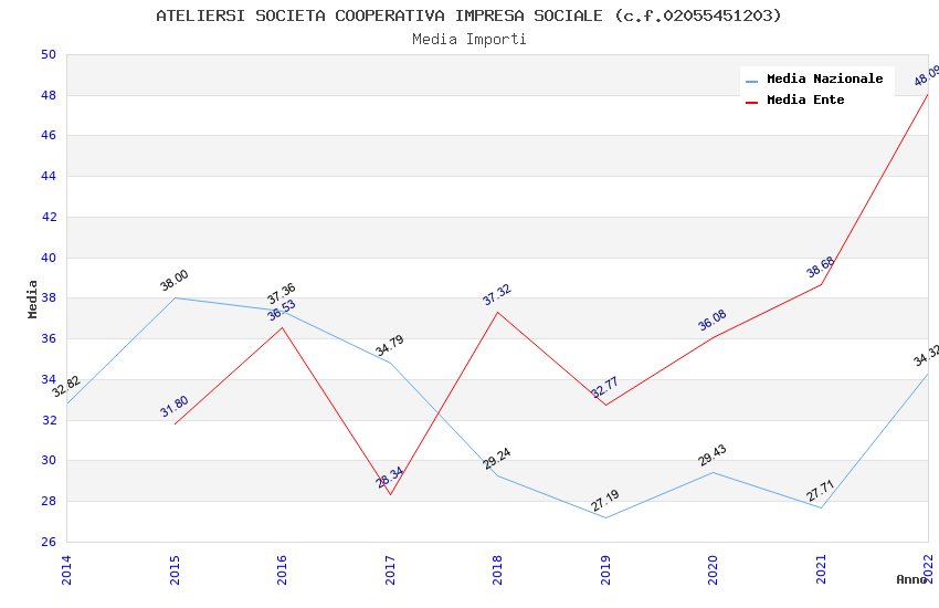 | Anno | Firme | Importi | Media | Naz. | Reg. | Prov. | Comu. |