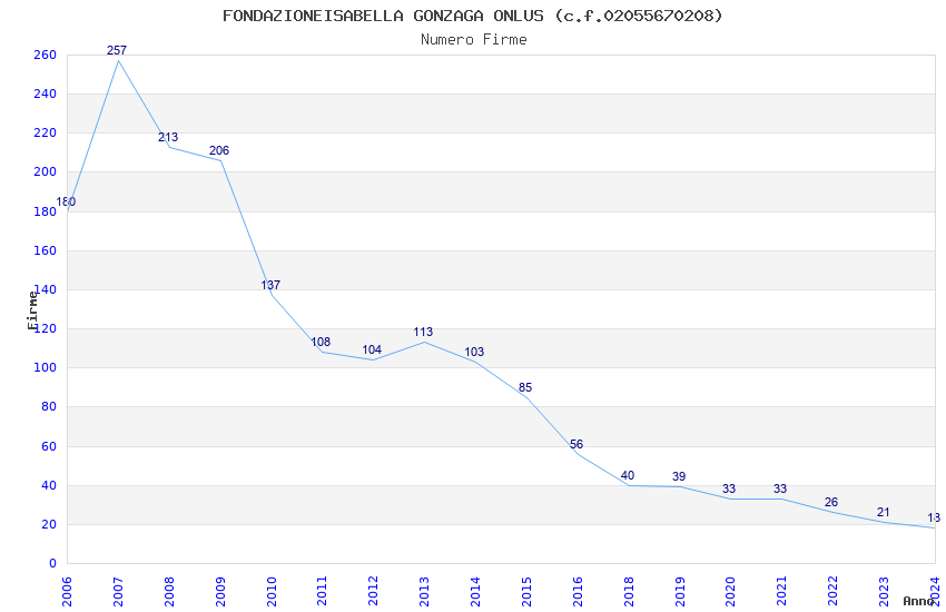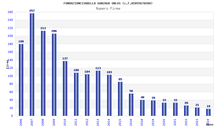 | Anno | Firme | Importi | Media | Naz. | Reg. | Prov. | Comu. |