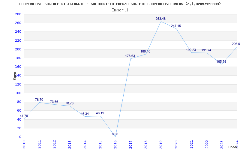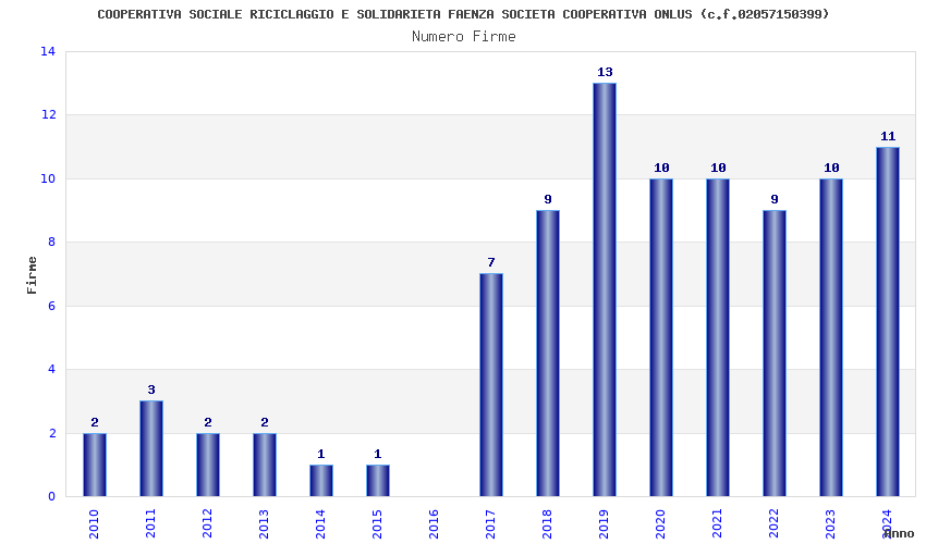 | Anno | Firme | Importi | Media | Naz. | Reg. | Prov. | Comu. |