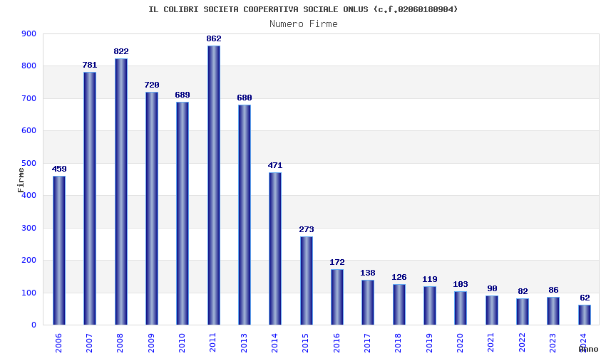 | Anno | Firme | Importi | Media | Naz. | Reg. | Prov. | Comu. |
