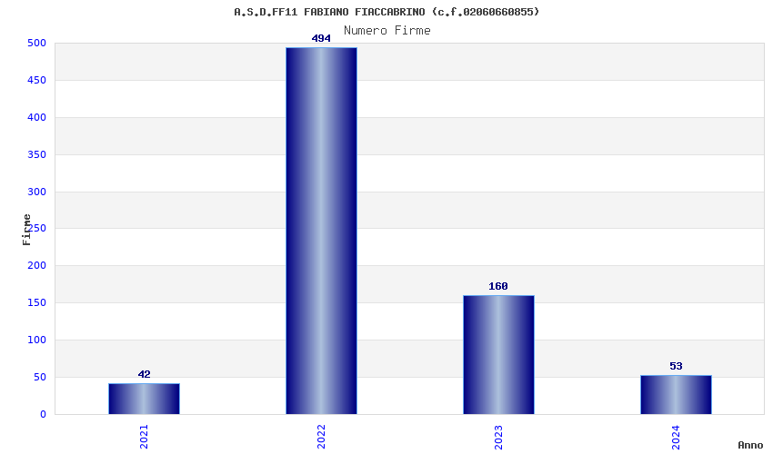 | Anno | Firme | Importi | Media | Naz. | Reg. | Prov. | Comu. |