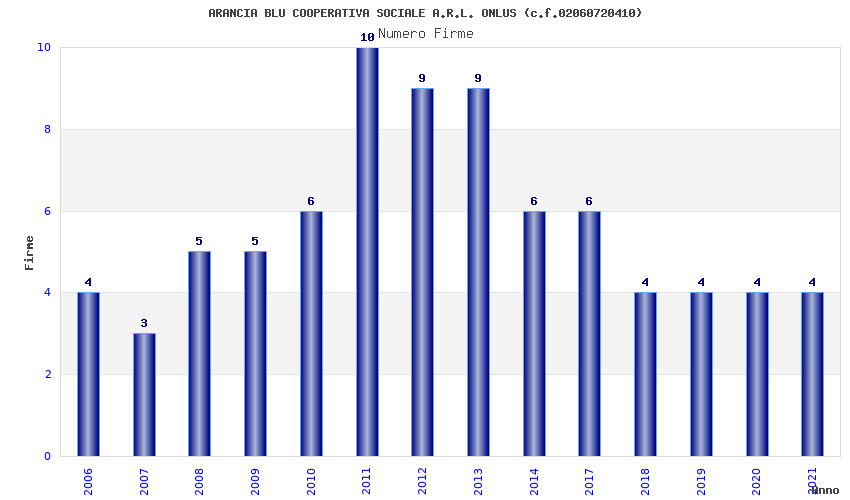 | Anno | Firme | Importi | Media | Naz. | Reg. | Prov. | Comu. |
