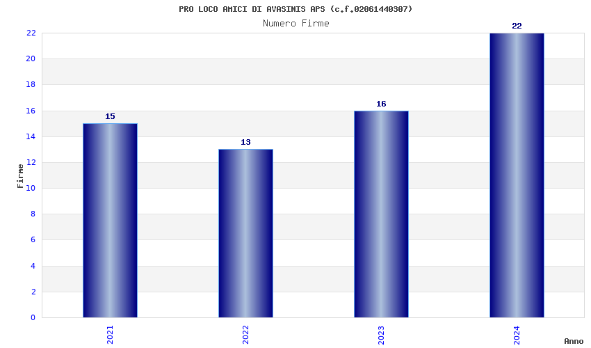| Anno | Firme | Importi | Media | Naz. | Reg. | Prov. | Comu. |