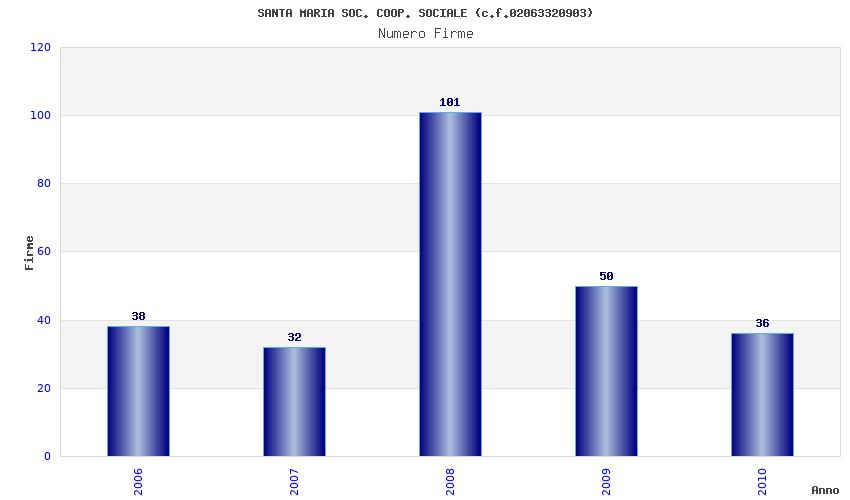 | Anno | Firme | Importi | Media | Naz. | Reg. | Prov. | Comu. |