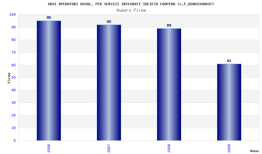 | Anno | Firme | Importi | Media | Naz. | Reg. | Prov. | Comu. |