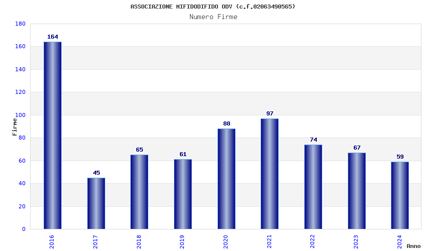 | Anno | Firme | Importi | Media | Naz. | Reg. | Prov. | Comu. |