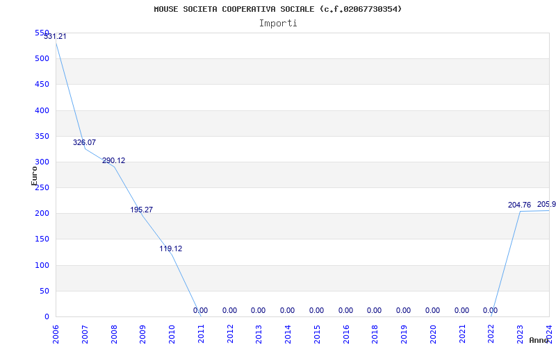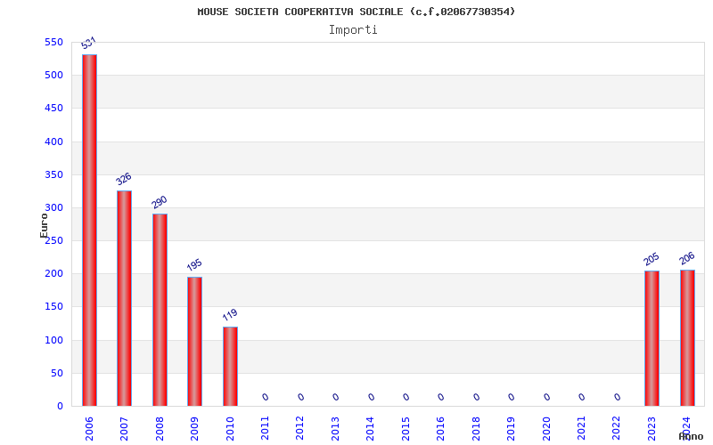 | Anno | Firme | Importi | Media | Naz. | Reg. | Prov. | Comu. |